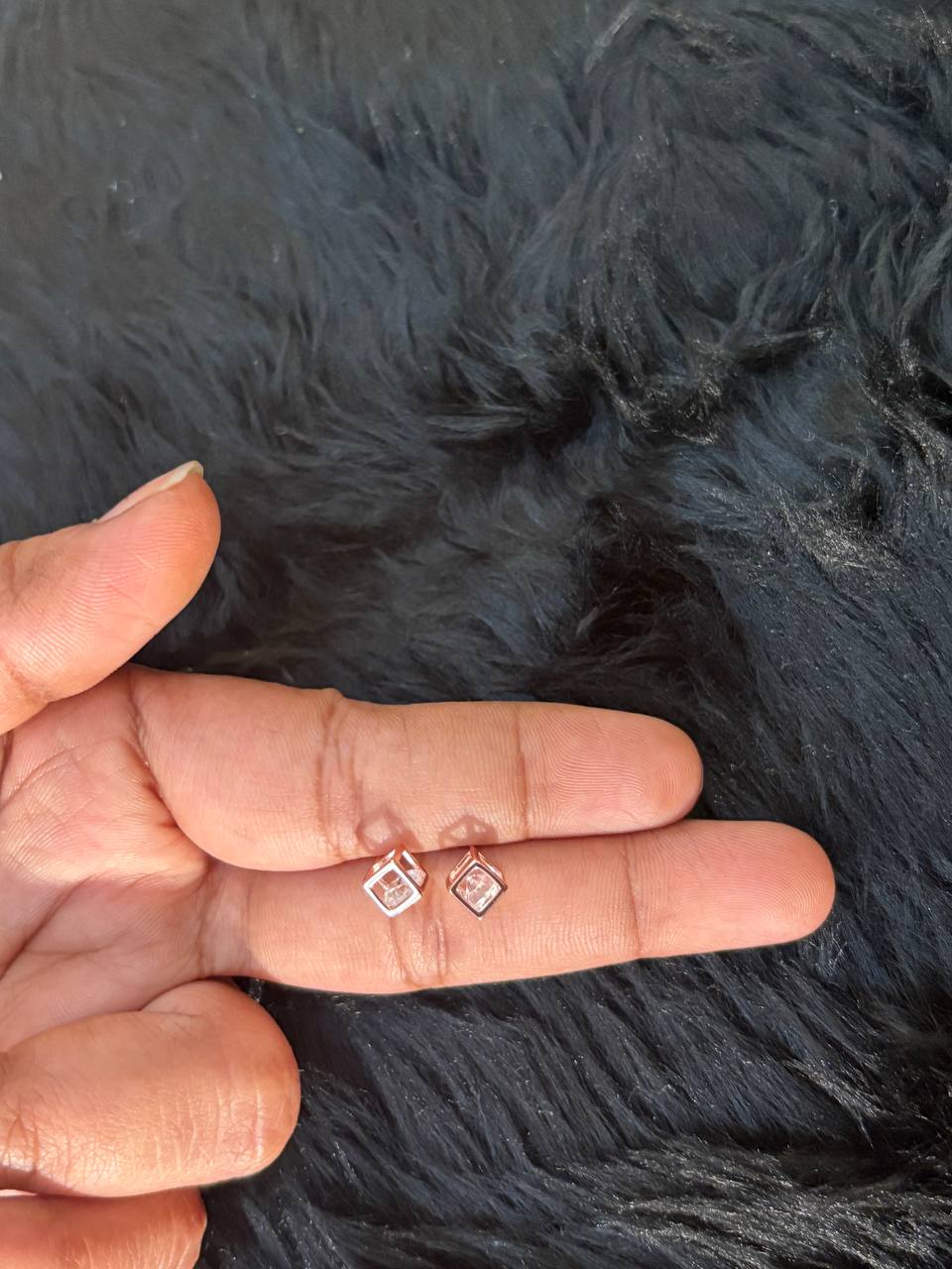 Chic silver rose gold-plated studs featuring clear square-cut stones framed in an open geometric design—perfect for a refined, modern statement.
