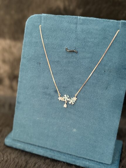 Graceful rose gold necklace featuring a floral-inspired pendant with shimmering stones.