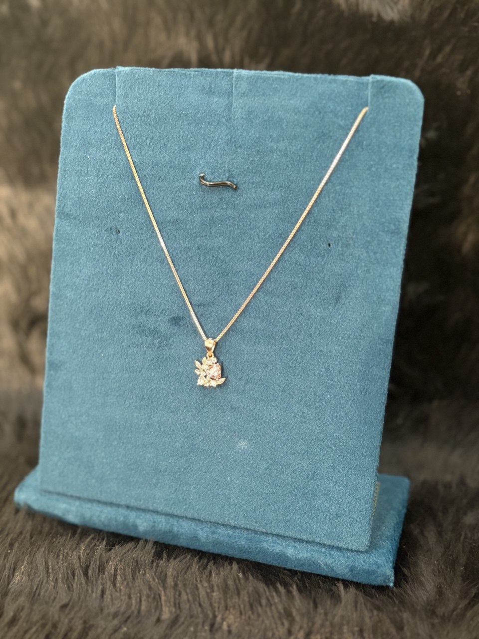 Elegant and modern, this rose gold necklace features a rectangular pendant framed with delicate sparkling stones—perfect for adding refined charm to any ensemble.”